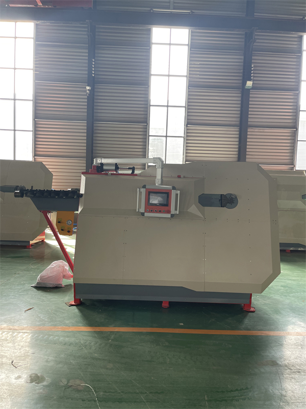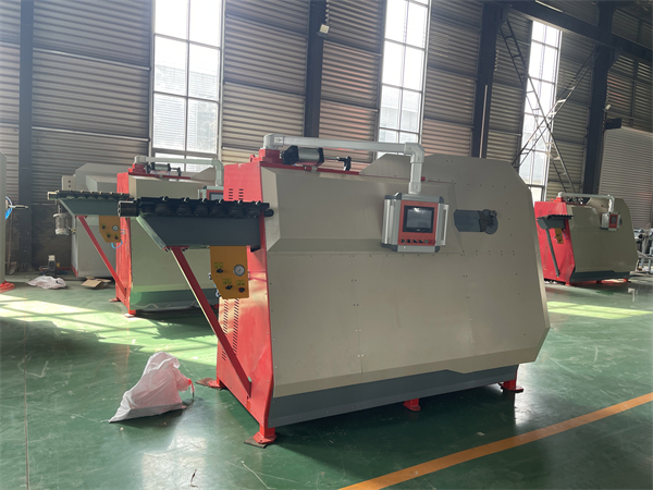 数控钢筋弯箍机操作简单,只需将钢筋传至传送装置,由输送轮向前输送,再由牵引轮送进弯箍机,通过弯曲装置自动弯曲成设置好的形状,然后用切刀进行切断。