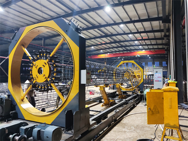 数控钢筋笼滚焊机是一种由PLC控制的加工生产钢筋笼的设备。全自动钢筋笼滚焊机的出现,结束了钢筋笼一贯手工钢筋绑扎的历史,为我国桥梁、高铁的制造提高了效率。